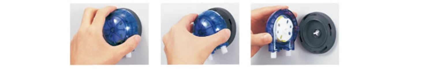 Le boîtier peut être monté et démonté facilement sans outils. Cela permet également d'effectuer rapidement des opérations de maintenance telles que le remplacement des tuyaux.